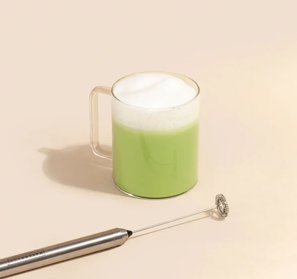 Haz tu ritual matcha más fácil y rápido con nuestro batidor eléctrico para matcha. Añádelo al carrito y disfruta de bebidas cremosas y perfectas en segundos.